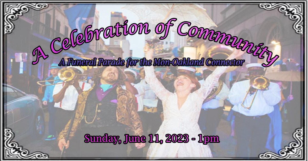 Out with the bad, in with the good! As the brass band sings, join us to celebrate the burial of the Mon Oakland Connector and uplift a new vision of community-centered process to take its place – one that uplifts the power of Pittsburghers over products and corporate profits. Join residents of Four Mile Run, Hazelwood and Panther Hollow, along with Junction Coalition, Pittsburghers for Public Transit, P.O.O.R.L.A.W., GH-CARED, and Eagleburger Band, for a New Orleans-style brass band funeral parade followed by a good-’ol community potluck picnic.